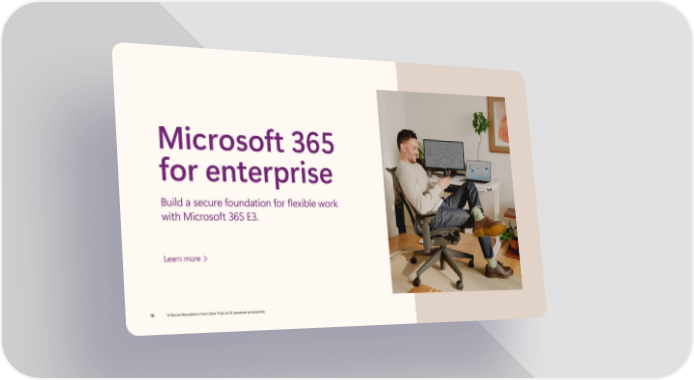 A secure foundation Page 11 Page 13Microsoft 365 for enterprise Build a secure foundation for flexible work with Microsoft 365 E3. Learn more 12 A Secure Foundation: From Zero Trust to AI-powered productivity
