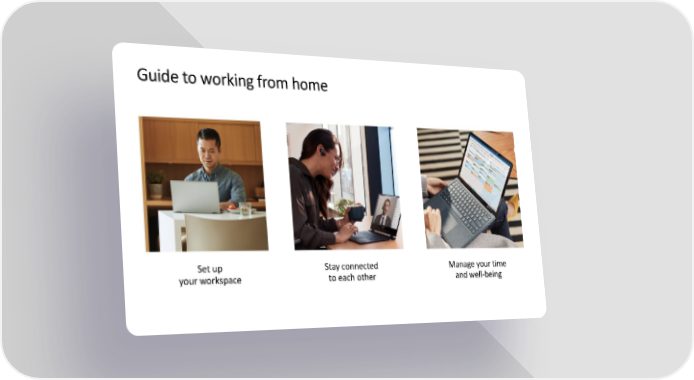 Guide to Working from Home Page 2 Page 4Guide to working from home Set up Stay connected Manage your time your workspace to each other and well-being