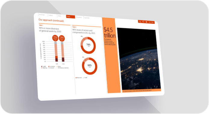 Overview Carbon Water Waste Ecosystems Appendix 47 Our approach (continued) Table 1 Table 2 $4.5 90% or more diversion 90% reuse of servers and of general waste by 2030 components in DCs by 2025 92% trillion Diversion 90% rate The market for 75% 79% Diversion Diversion circular economy rate rate business models will 100% be $4.5 trillion by 2030. 90% 74% 80% FY19 70% 60% 50% 40% 30% 20% 90% % waste generated (metric tons)10% 0% FY19 FY20 84% Landfill Incineration Reuse FY20 Recycling Compost - - - 10% diversion threshold Reuse rate Target Driving technologies to reduce waste and reuse materials and products.