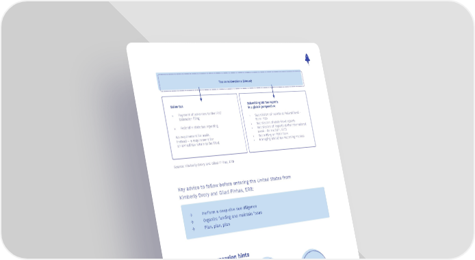 Tax considerations (Nexus) Sales tax Submitting US Tax reports in a global perspective: • Payment of advances to the IRS/ Extension filing • Submission of reports at Federal level - Form 1120 • Federal + state tax reporting • Submission of state-level reports • Submission of Reports at the International No requirement for audit. Level - Forms 5471, 5472 Instead – a requirement for • Submitting an FBAR form an annual tax return to be filed. • Managing Global Tax Reporting Process Source: Kimberly Drory and Gilad Pinhas, ERB Key advice to follow before entering the United States from Kimberly Drory and Gilad Pinhas, ERB: → Perform a deep dive due diligence → Organize funding and maintain focus → Plan, plan, plan Top 3 US expansion hints Perform a Funding and Planning, “Deep Dive” Focus planning, Due Diligence planning Before going global, it is crit- A company is never in a place There is no room for mistakes. ical to understand what the where it is funded enough. If you go to the US after Series full impact on your business Keep focused on achieving the A, you won’t get to Series B if will be next funding round – and the you don’t perform team focused on performance 57