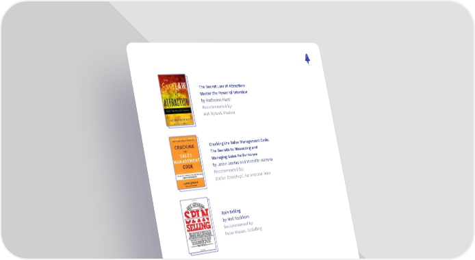 The Secret Law of Attraction: Master the Power of Intention by Katherine Hurst Recommended by: Neil Ryland, Peakon Cracking the Sales Management Code: The Secrets to Measuring and Managing Sales Performance by Jason Jordan and Michelle Vazzana Recommended by: Stefan Groschupf, Automation Hero Spin Selling by Neil Rackham Recommended by: Peter Krauss, CoSelling The Lean Startup by Eric Ries Recommended by: Amnon Drori, Octopai 79