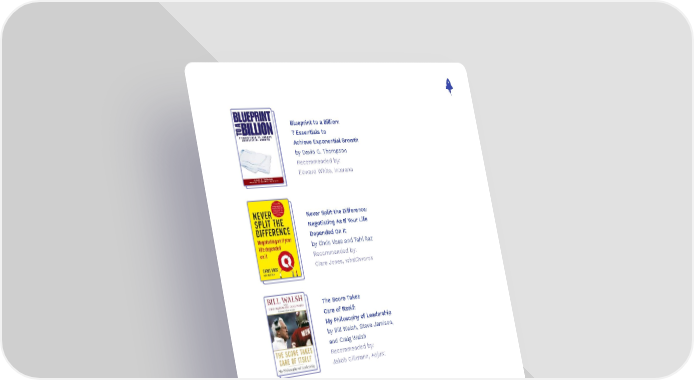 Blueprint to a Billion: 7 Essentials to Achieve Exponential Growth by David G. Thompson Recommended by: Edward White, Interana Never Split the Difference: Negotiating As If Your Life Depended On It by Chris Voss and Tahl Raz Recommended by: Clare Jones, what3words The Score Takes Care of Itself: My Philosophy of Leadership by Bill Walsh, Steve Jamison, and Craig Walsh Recommended by: Jakob Gillmann, Adjust Integrity Selling for the 21st Century: How to Sell the Way People Want to Buy by Ron Willingham Recommended by: Edward White, Interana 81
