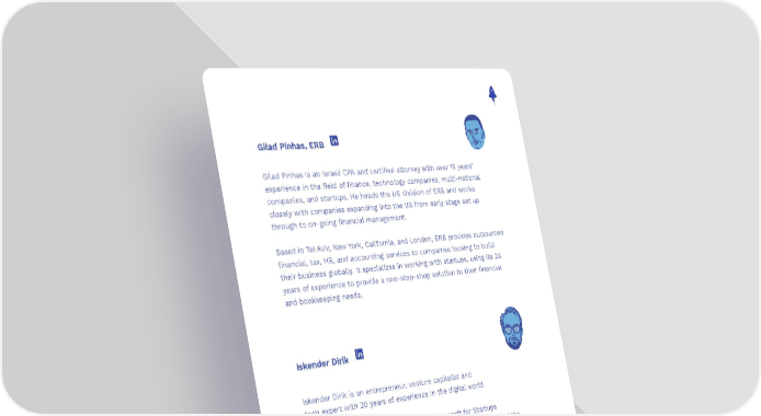 Gilad Pinhas, ERB Gilad Pinhas is an Israeli CPA and certified attorney with over 16 years’ experience in the field of finance, technology companies, multi-national companies, and startups. He heads the US division of ERB and works closely with companies expanding into the US from early stage set up through to on-going financial management. Based in Tel Aviv, New York, California, and London, ERB provides outsourced financial, tax, HR, and accounting services to companies looking to build their business globally. It specializes in working with startups, using its 23 years of experience to provide a one-stop-shop solution to their financial and bookkeeping needs. Iskender Dirik Iskender Dirik is an entrepreneur, venture capitalist and tech expert with 20 years of experience in the digital world. He is MD/CEO at Microsoft ScaleUp and Microsoft for Startups in Berlin. Iskender is also Venture Partner for EQT Ventures, one of the largest Venture Capital funds in Europe. Prior to that, Iskender led a corporate venture capital fund and was for six years MD/CEO of a tech consulting and software development firm. He founded his first company at the age of 21 and built and sold a couple of tech startups afterwards. 92