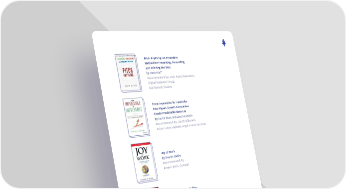 Pitch Anything: An Innovative Method for Presenting, Persuading, and Winning the Deal by Oren Klaff Recommended by: Jens Hutzschenreuter, Digital Business Group; Neil Ryland, Peakon From Impossible To Inevitable: How Hyper-Growth Companies Create Predictable Revenue by Aaron Ross and Jason Lemkin Recommended by: Jakob Gillmann, Adjust; Jens Lapinski, Angel Invest Ventures Joy at Work by Dennis Bakke Recommended by: Amnon Drori, Octopai It‘s Not about the Coffee: Leadership Principles from a Life at Starbucks by Howard Behar Recommended by: Neil Ryland, Peakon 77
