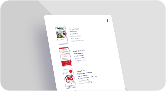 The Four Steps to the Epiphany by Steve Blank Recommended by: Jens Lapinski, Angel Invest Ventures How to Win Friends & Influence People by Dale Carnegie Recommended by: Neil Ryland, Peakon Getting to Yes: Negotiating an Agreement Without Giving In by Roger Fisher and William L. Ury Recommended by: Peter Krauss, CoSelling 42 Rules to Increase Sales Effectiveness by Michael Griego and Laura Lowell Recommended by: Stefan Groschupf, Automation Hero 78