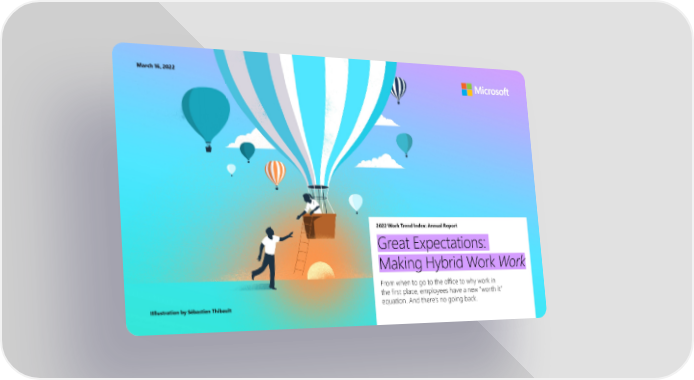 March 16, 2022 2022 Work Trend Index: Annual Report Great Expectations: Making Hybrid Work Work From when to go to the office to why work in the first place, employees have a new “worth it” equation. And there’s no going back. IIllustration by Sébastien Thibault 1