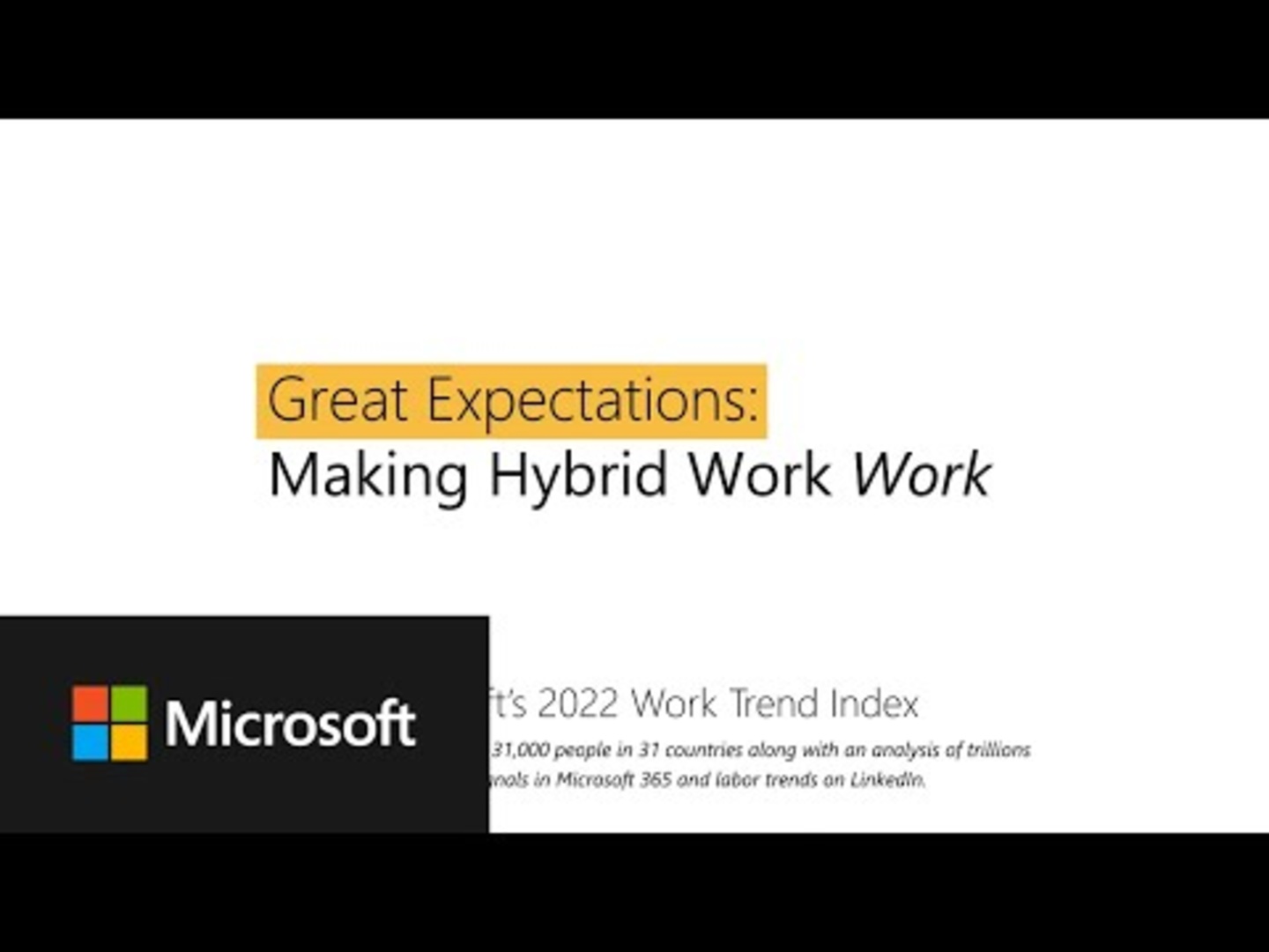 2022 Work Trend Index: Annual Report The Way Forward The past two years have made a lasting imprint on work—the impact of which will be felt long into the future. The new “worth it” equation is not a zero-sum game. Employees value flexibility and wellbeing, and these great expectations create an opportunity for every organization to reimagine work-life integration as a win-win. Giving people agency to do their best work is not only in their best interest—it’s good for business. To make hybrid work work, leaders need to empower managers to be the culture keepers, rethink the role of the office, rebuild social capital for a digital-first workforce, and create new practices for sustainable flexible work. Technology plays a key role, but this moment calls for a new mindset. As the world continues to evolve, organizations that take a culture- first, learn-it-all approach will come out ahead. Learn more about how Microsoft is innovating to help organizations make hybrid work work.